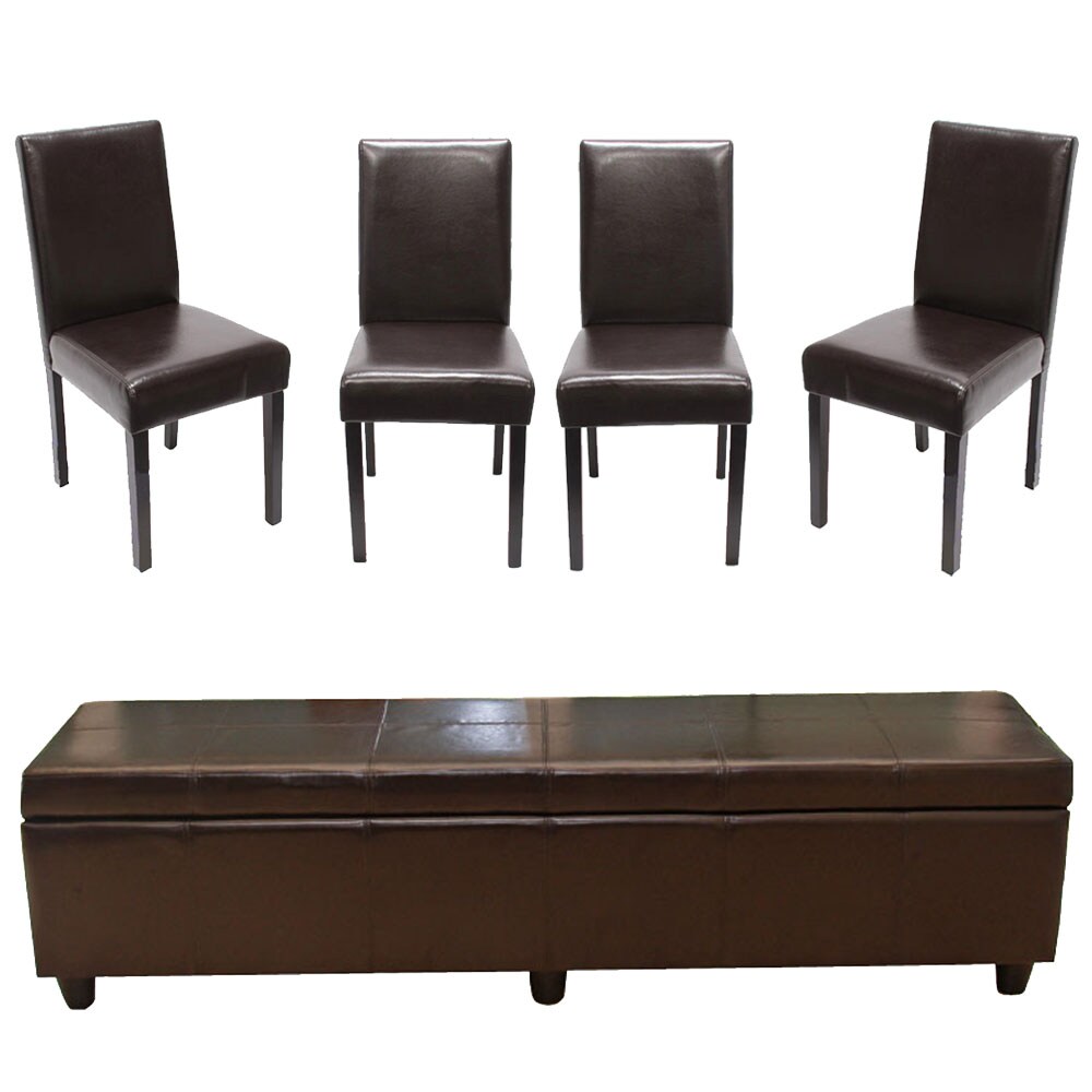 Mendler Garnitur Sitzgruppe Bank mit Aufbewahrung Kriens XXL+4 Stühle Littau, Kunstleder/Leder MVG-zertifiziert ~ braun