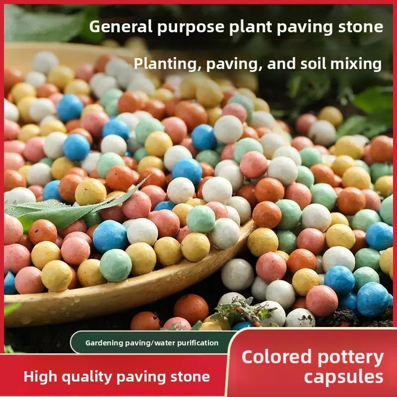 Blomstrende planter med bunnlagte belegningssteiner pottet i pustende hydroponiske lecakuler