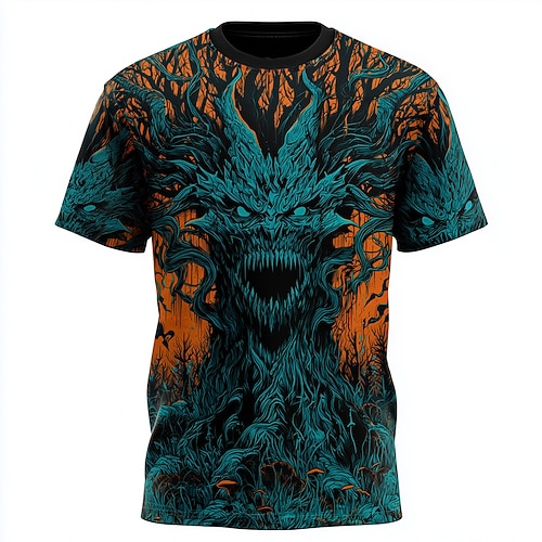 Per uomo Illusione ottica 3D Demone dell'albero Maglietta Manica Corta maglietta Stampa 3D Girocollo Camicia Esagerato Designer Orrore Feste Streetwear Ferie Blu Verde scuro Estate Primavera Tutte le