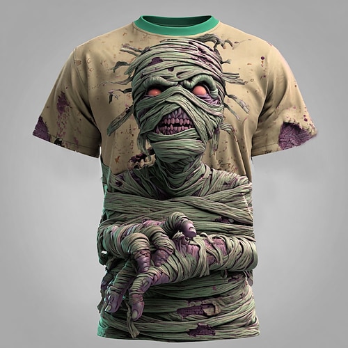 Per uomo Illusione ottica 3D Mummia Maglietta Manica Corta maglietta Stampa 3D Girocollo Camicia Esagerato Designer Orrore Feste Streetwear Ferie Blu Verde Cachi Estate Primavera Tutte le stagioni