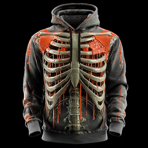 Per uomo 3D Scheletro Felpa con Cappuccio Felpa Punk Esagerato Gotico Casual Manica Lunga Girocollo Con Cappuccio Club Abbigliamento casual alla moda Rosso Blu Arancione Verde Coulisse Autunno Inverno