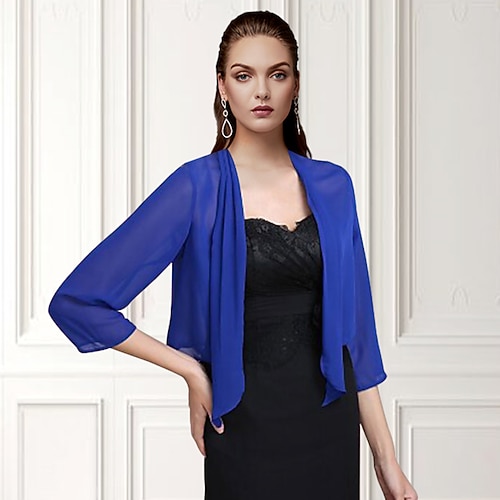 Sciarpe Bolero Donne Elegante Casual Quotidiano Manica 3/4 Chiffon Wraps da Sposa Con Colore Puro Per Matrimonio Primavera Estate vestire per impressionare