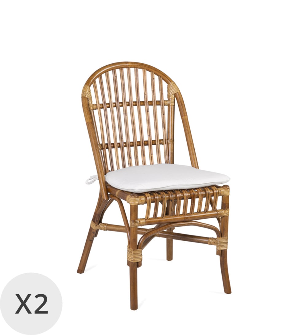 Maisons du Monde Set di 2 sedie per isola centrale in rattan e acciaio nero alt. 66 cm 45x100.5x56cm