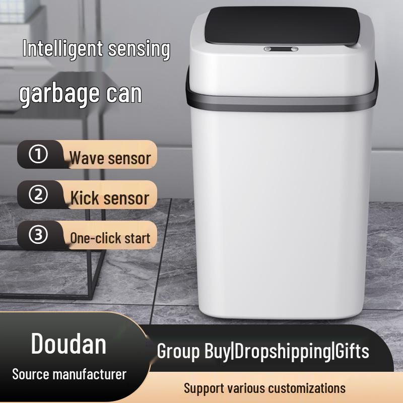 Lyxig smart sensor soptunna med långvarigt batteri, energisparande, automatisk fliktopp för hushåll