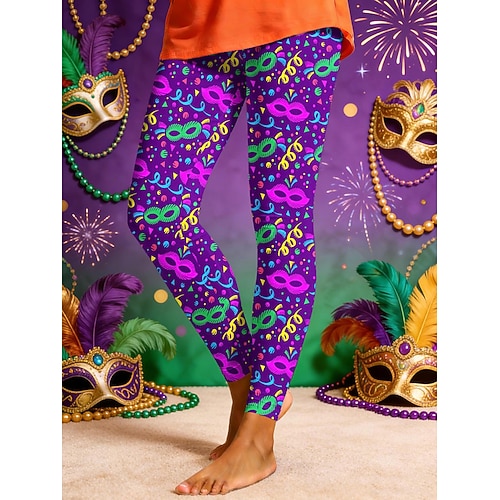 leggings da donna carnevale attivi vacanza moda lunghezza intera pantaloni a vita alta carnevale grafica stampa geometrica taglio alto comfort esterno comodo elastico vacanza formale strada ametista