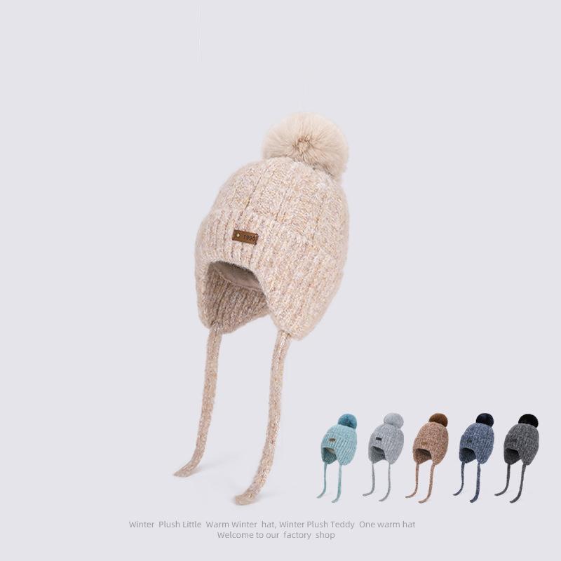 Winter Outdoor Warm Knitted Wool Hat Pullover Cap Women's Cold-Proof Ear Protection Bomber Hat light blue