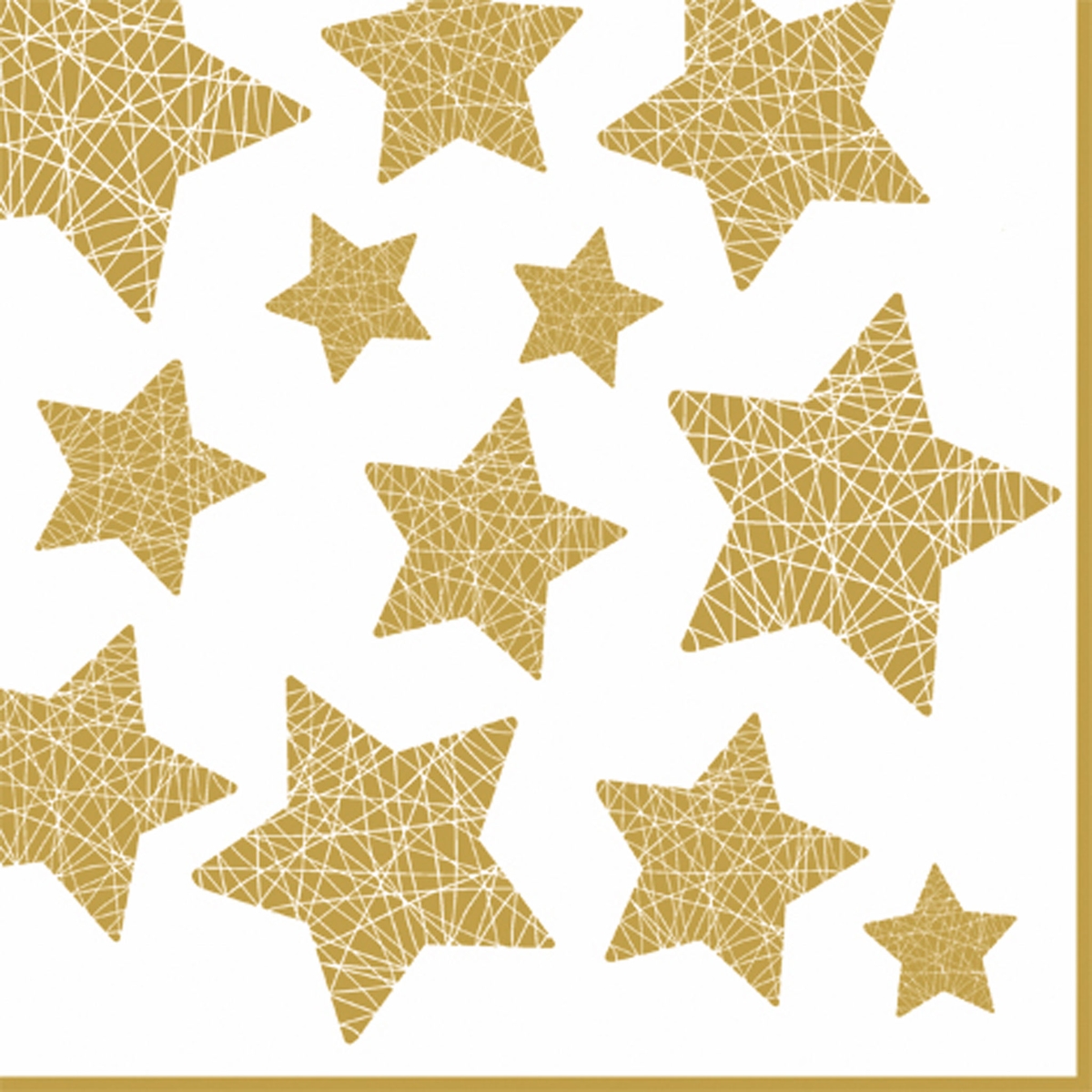 ti-flair 20 Papierservietten 33x33cm Sternmotiv 3lagige Weihnachtsservietten Weiß Gold