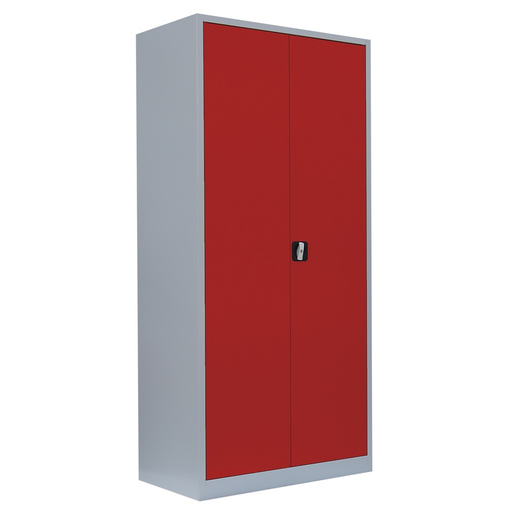 UNIVERSAL Flügeltürenschrank, HxBxT 1950 x 914 x 500 mm, 4 verzinkte Fachböden, 5 Ordnerhöhen, lichtgrau / kardinalrot BISLEY