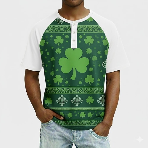 Per uomo San Patrizio Grafico Quadrifoglio Maglia Henley Maglietta Manica Corta Moda Designer Casual Quotidiano All'aperto Primavera Estate Tutte le stagioni Verde Chiaro Azzurro cielo Verde scuro