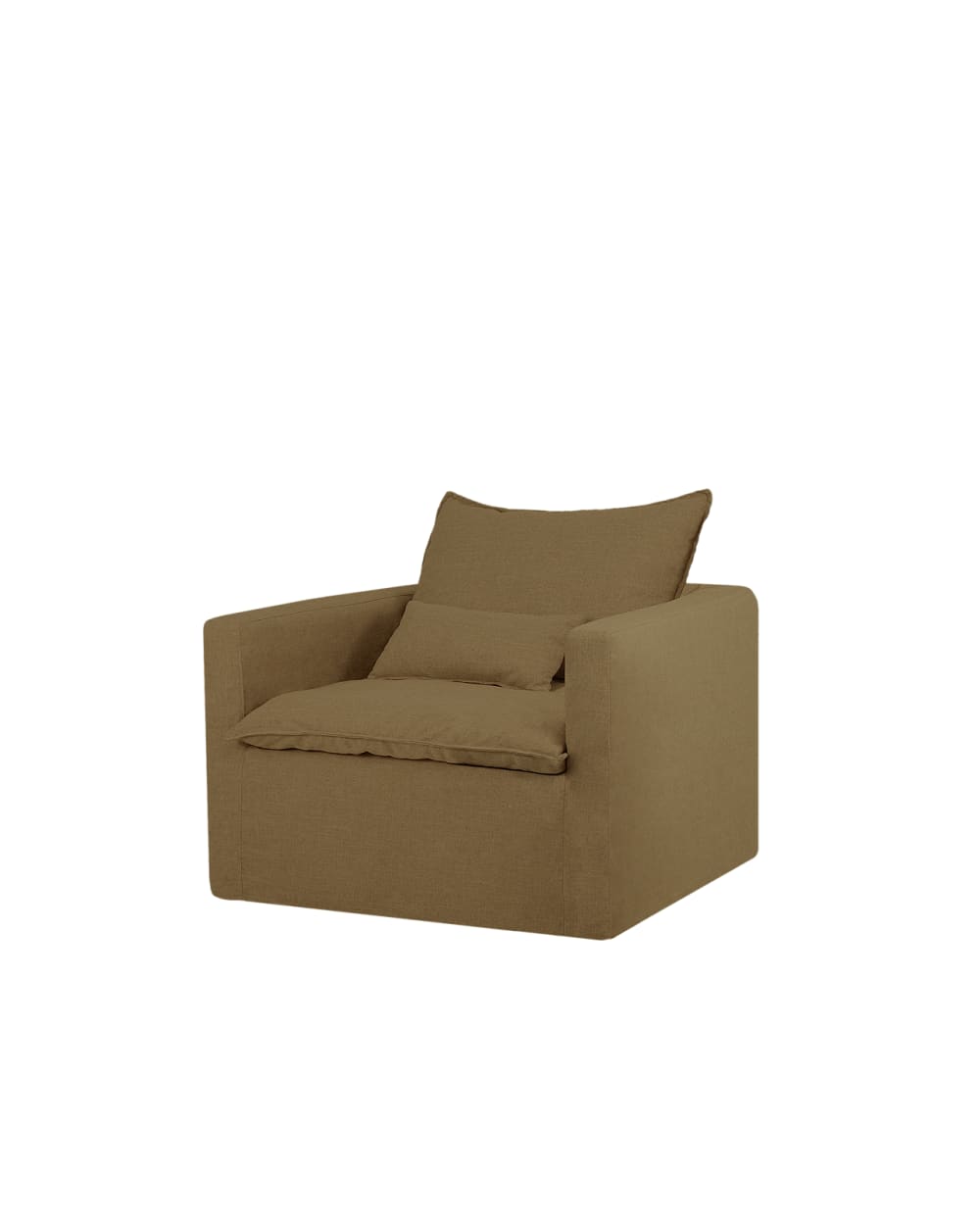 Poltrona in cotone e lino sfoderabile verde 109x96cm