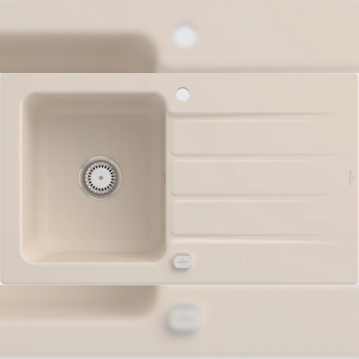 Villeroy & Boch Villeroy&Boch Rechteckiges Spülbecken, Küchenspüle mit Abtropffläche Architectura 50 Ivory 86x51cm,3350 01 R1