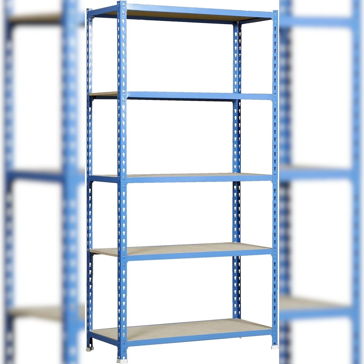 SimonRack Maderclick schraubenloses Metallregal 5 Böden. Farbe BLAU/HOLZ 2000x1000x500 mm