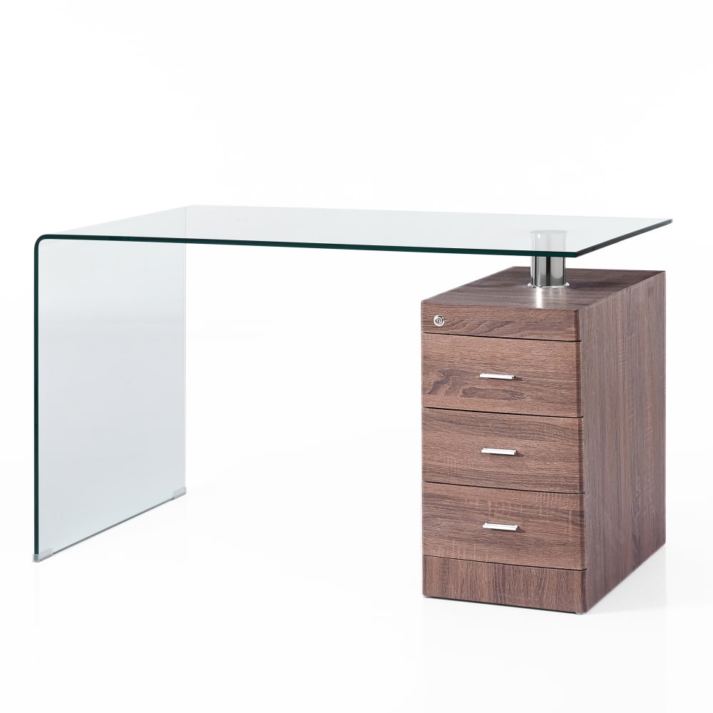 Scrivania con cassettiera in vetro curvato cm H.75 x L.125 x P.65