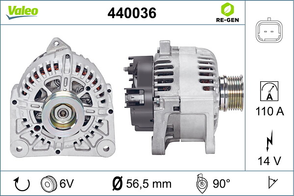 VALEO Generator REMANUFACTURED PREMIUM 440036 14V 110A für RENAULT DACIA 8200667607 8200323126 7711368385