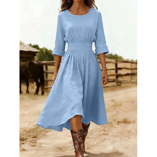 Per donna Abito Midi Abito a trapezio Vacanza Casual Vestibilità regolare Semplice Manica 3/4 Girocollo Blu Nero Rosa Blu marino Estate Primavera Autunno
