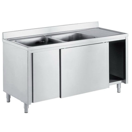 VM Europa Edelstahl Spültisch 2 Becken links, ohne Grundboden, mit Aufkantung, Eco - zur selbstmontage: 160 x 70 cm / mit Aufkantung / selbstmontage