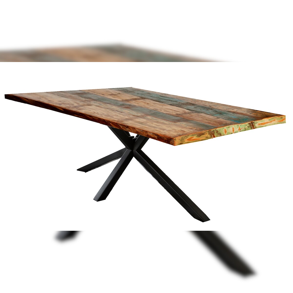 SIT Esstisch "Tops" aus recyceltem Altholz roheisen lackiert B/H/T: 220cm x 78cm x 100cm