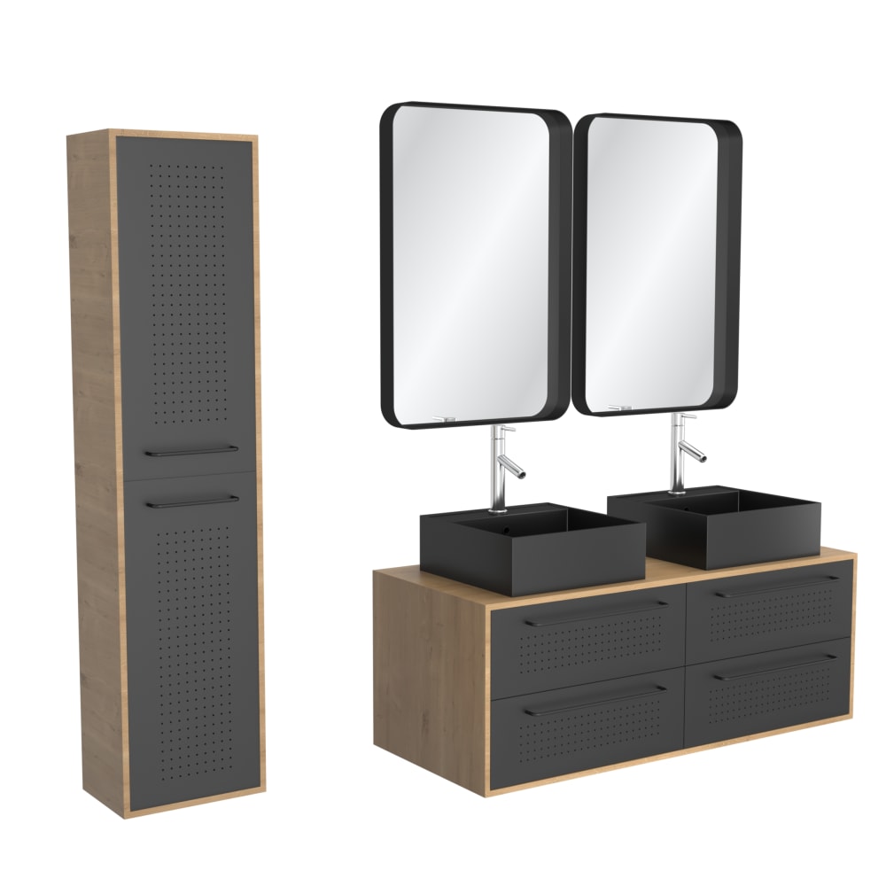 Ensemble meubles de salle de bains effet bois marron avec miroir 50x