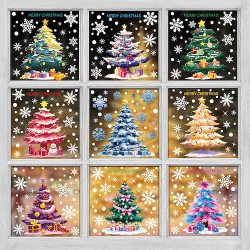 9 fogli di adesivi murali natalizi per finestre, decorazioni, alberi di Natale, pupazzi di neve fiocchi di neve, elettricità statica, vetrina decorazioni in vetro per la casa