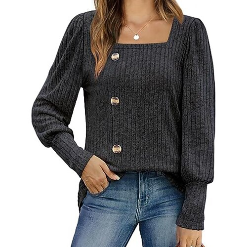 Per donna Blusa Bottoni Tinta unica Elegante Casual Manica Lunga Collo quadrato Top Regolari Quotidiano Blu Nero Verde militare Marrone Albicocca Estate Primavera Autunno Inverno