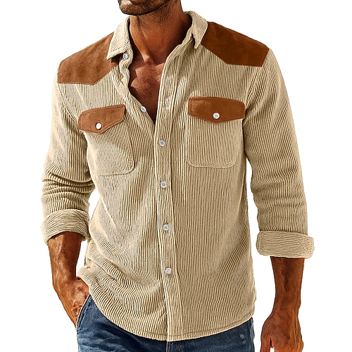 Per uomo Camicia Maglia a coste Camicia casual Camicia con colletto alla coreana Camicia con Bottoni Blu Blu marino Kaki Grigio Manica Lunga Semplice Colletto Casuale Quotidiano Patchwork