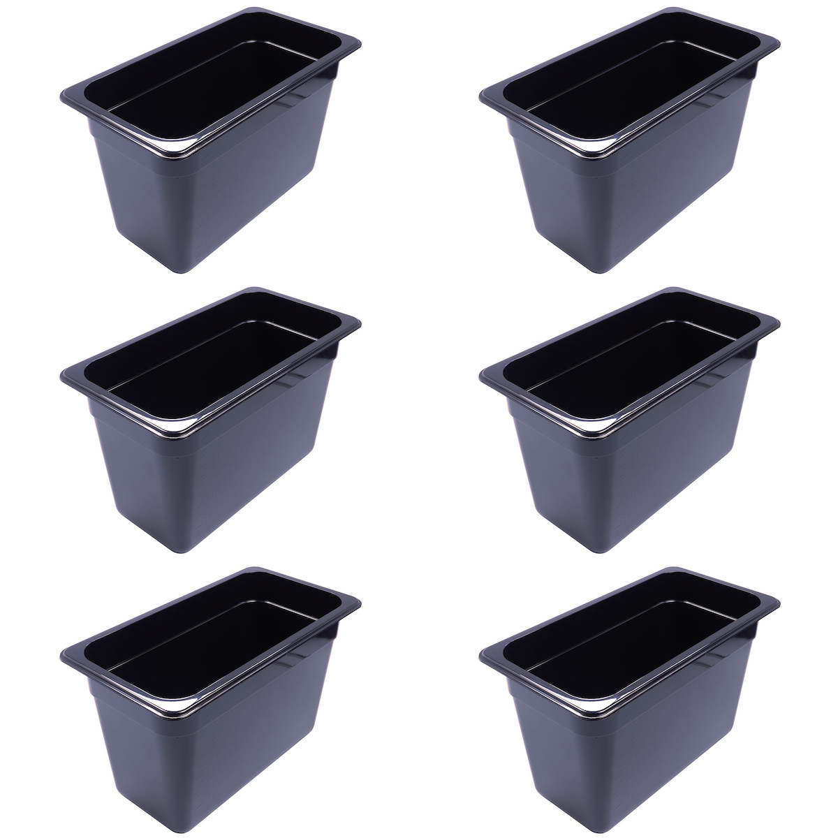 AcMax 6 Stück Kunststoff GN 1/3 Polycarbonat schwarz Gastronormbehälter GN-Behälter 7,8 Liter Tiefe 200mm