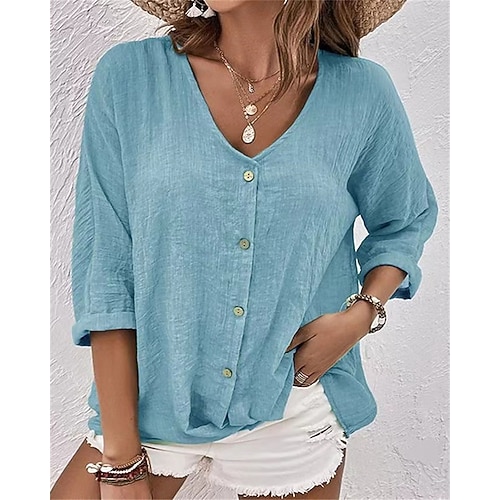 Per donna Camicia Finto cotone e lino Quotidiano Elegante Casual Manica Lunga Colletto a Camicia Bianco Primavera Autunno
