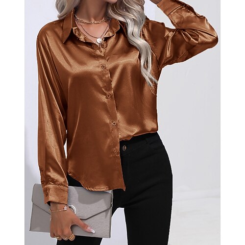 Per donna Camicia Elegant Raso/Satin Blusa Semplice Elegante Manica Lunga Colletto a Camicia Top Regolari Ferie Uscire Bottoni Blu Verde chiaro Marrone chiaro Marrone Grigio scuro Estate Primavera