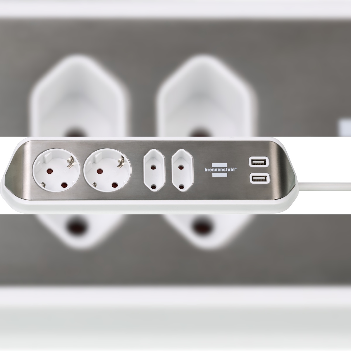 Brennenstuhl 1153590420 Verlängerungskabel 2 m 4 AC-Ausgänge Drinnen Silber, Weiß