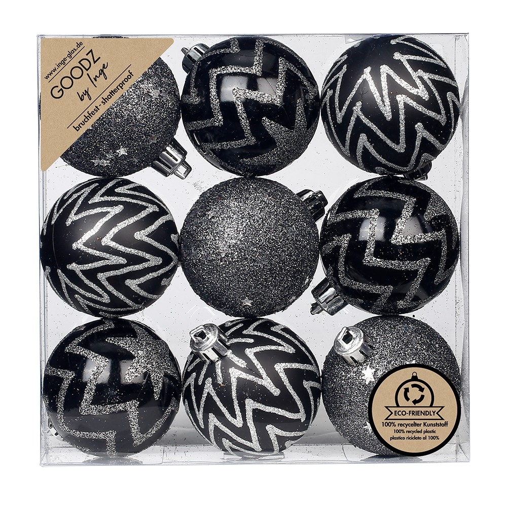 Inges Magic & Goodz 9 Weihnachtskugeln 6cm Kunststoff Christbaumkugeln Weihnachtsbaumkugeln schwarz