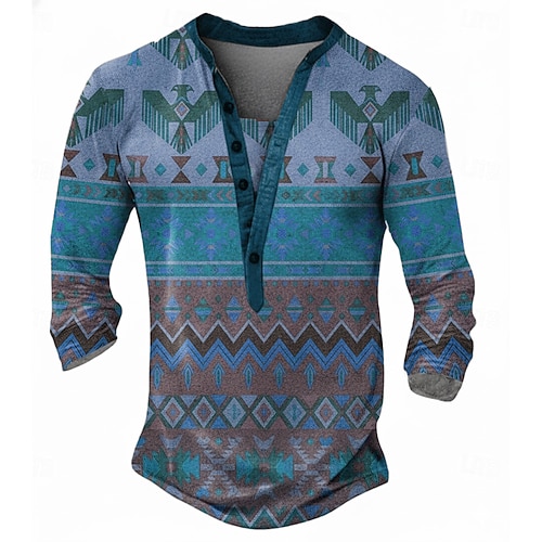 Per uomo Grafico Uccello Maglia Henley Maglietta Manica Lunga Moda Quotidiano Retrò Vintage Casuale Ferie Uscire Primavera Autunno Blu chiaro Viola Cachi Grigio Henley Maglietta Henley