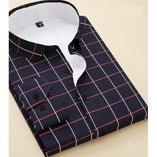 Per uomo Camicia Camicia elegante Camicia button-down Camicia a quadri A Quadri / A Righe / Chevron / Rotondo Abbigliamento quotidiano Abbigliamento Aziendale Bianco kaki Blu marino scuro Blu reale