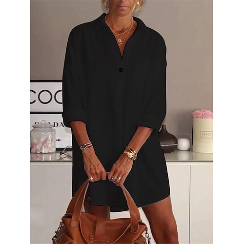 Per donna Mini Abito Abito Camicia Classico Moderno All'aperto Vacanza Weekend Vestibilità regolare Semplice Manica Lunga Colletto a Camicia Blu Nero Viola Cachi Autunno