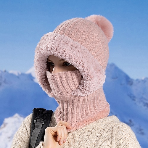 Cappello invernale da donna per ciclismo all'aperto, foderato in pile, scaldaorecchie in maglia, sciarpa, set caldo berretto e scaldacollo, set da due pezzi per sport con tempo freddo