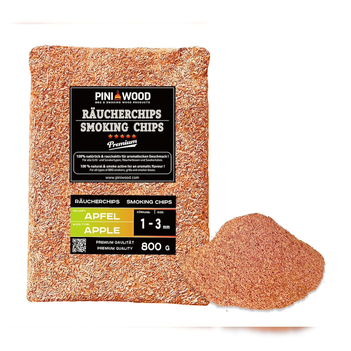 PINI 800 g Räucherchips Apfel 1-3 mm Smoking Chips Räucherspäne