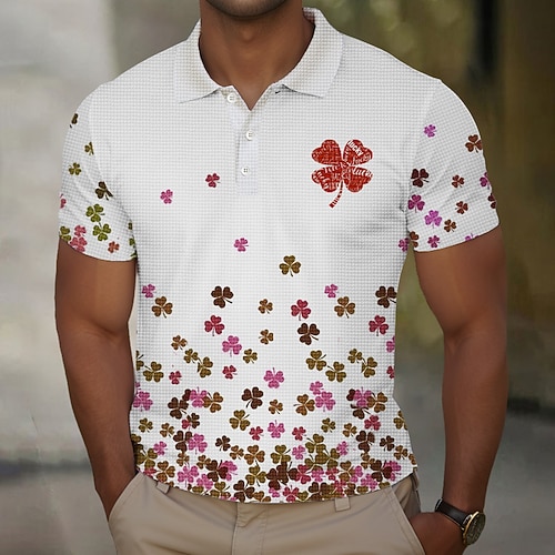 San Patrizio Per uomo Quadrifoglio Giorno di San Patrizio Magliette Polo a Nido d'Ape Polo Manica Corta Magliette polo Collo ripiegato Casual Vacanza Giorno di San Patrizio Streetwear Festival 3D