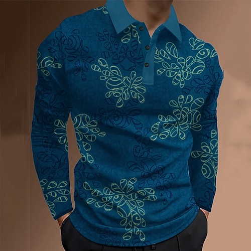 Per uomo Geometrico Magliette Polo a Nido d'Ape Manica Lunga Magliette polo Bavero Casual Athleisure Abbigliamento quotidiano Stampa 3D Primavera Autunno Inverno Blu