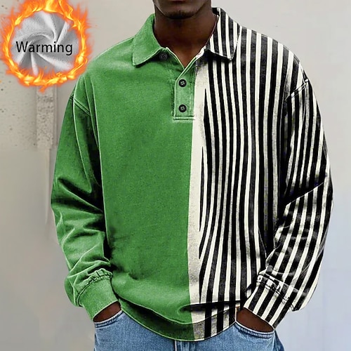 Per uomo A righe Polo Camicie termiche Manica Lunga Magliette polo Bavero Casual Athleisure Ferie Abbigliamento quotidiano Stampa 3D Autunno Inverno Blu Bianco Verde