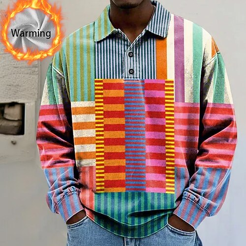 Per uomo A righe Astratto Polo Camicie termiche Manica Lunga Magliette polo Bavero Casual Athleisure Ferie Abbigliamento quotidiano Stampa 3D Autunno Inverno Rosso Marrone Arcobaleno
