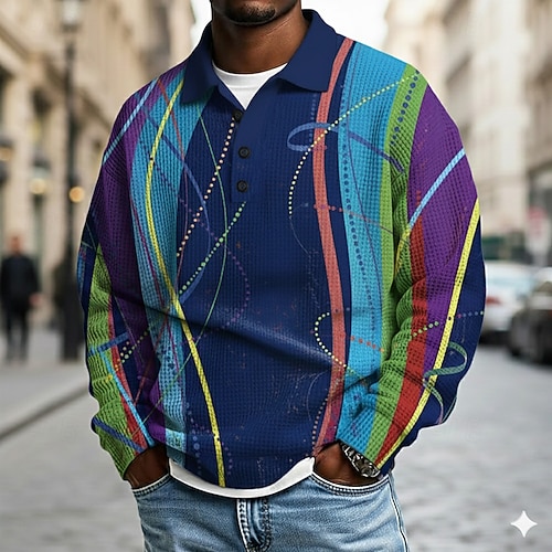Per uomo Blocco di colori Geometrico Magliette Polo a Nido d'Ape Manica Lunga Magliette polo Bavero Abbigliamento Sportivo Casual Scuola Athleisure Abbigliamento quotidiano Stampa 3D Primavera