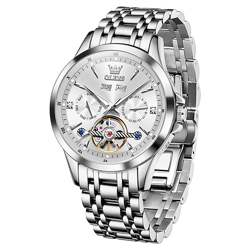 Il nuovo orologio da uomo olevs business è dotato di un calendario perpetuo luminoso, un piccolo orologio meccanico automatico multifunzionale a tre lancette ed è uno scheletro sportivo impermeabile