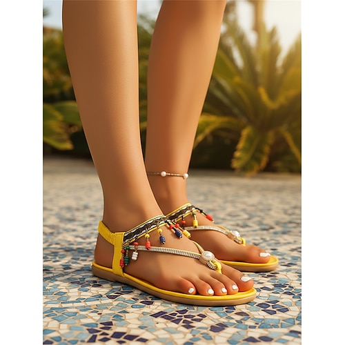 sandali infradito da donna in stile bohémien con perline e frange alla caviglia – scarpe estive comode e basse da spiaggia per vacanze, resort, festival e viaggi informali