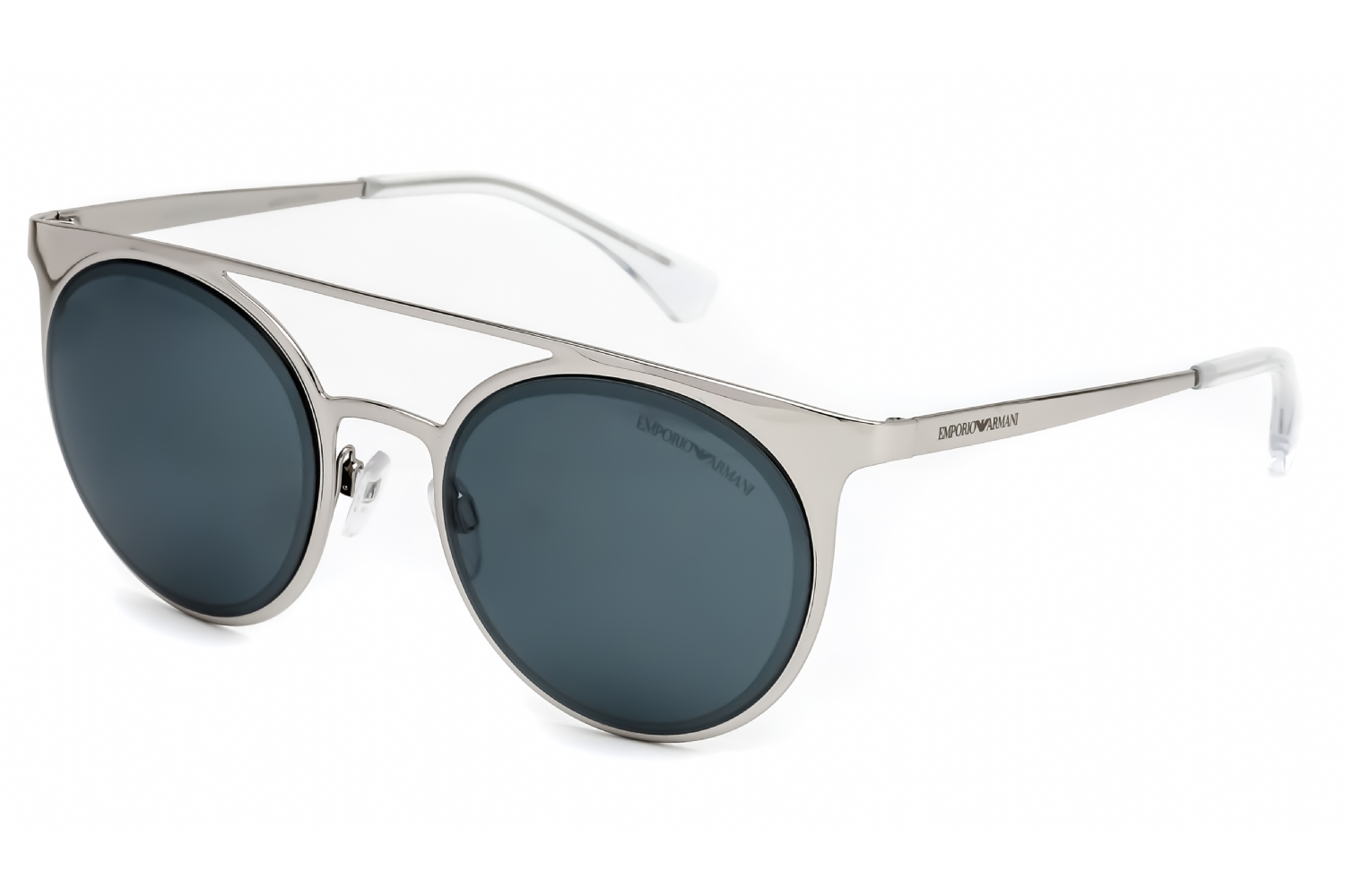 Armani Mens Emporio Round Metal Men Sunglasses Shiny Silver / Mirrored Black - Multicolour - One Size | Armani Sale | Discount Designer Brands