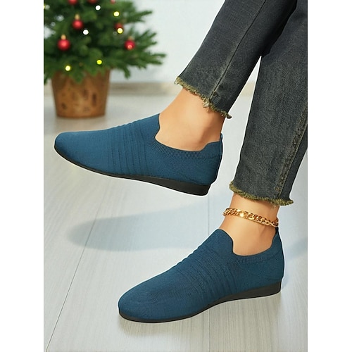 mocassini da donna in maglia blu navy – scarpe basse casual traspiranti e slip-on per il comfort e l'uso quotidiano