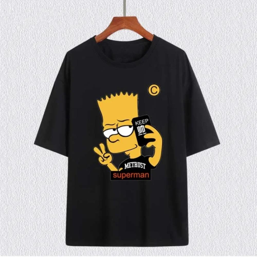 MINISO The Simpsons Familie Tegneserie Trykk Bomulls T-skjorter Sommer Kortermet Tees Kul Harajuku Streetwear Casual Barn/Voksen Topp cm Svart