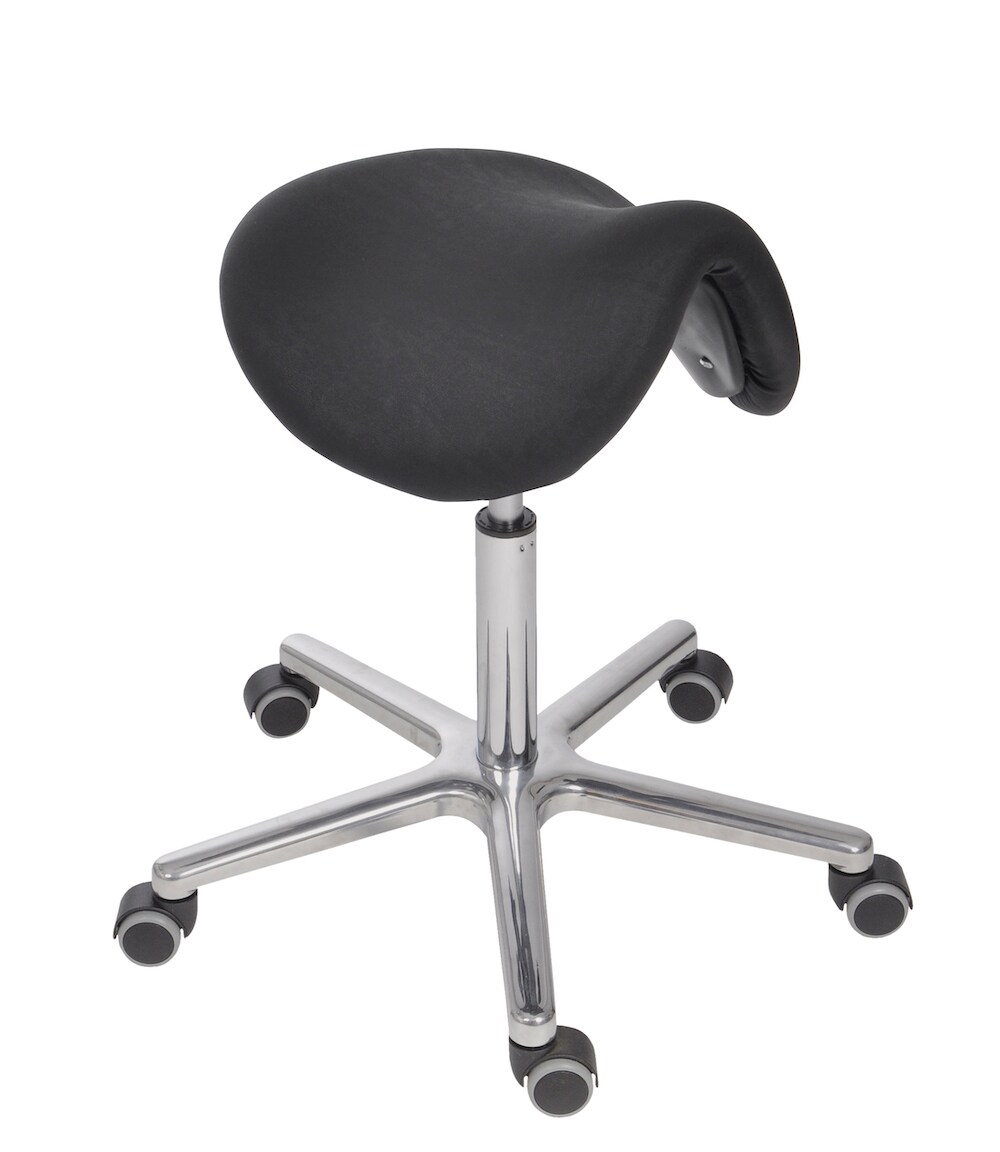 PROREGAL Antistatischer Sattelhocker Lexington, ESD-Sitz, multibeweglicher Sitzmechanik, Sitzhöhe 50-65cm, Kunstleder-Sitz, Aluminium-Fußkreuz, Rollen