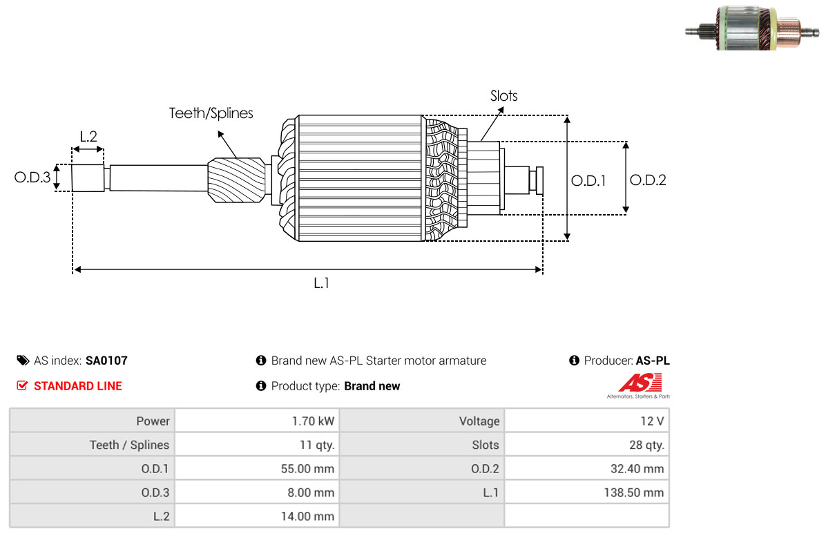 AS-PL Anker, Starter SA0107 Universal 12V 55,00mm für RENAULT VW FIAT IVECO MERCEDES-BENZ VOLVO BMW 9939778 8983501588 9944712