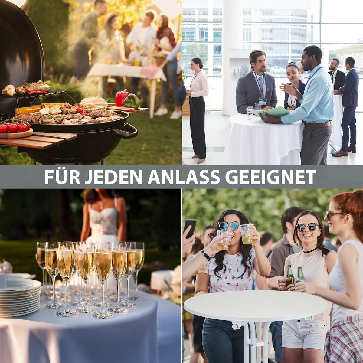 TRUTZHOLM Stehtisch klappbar Ø 80 cm Höhe 110 cm Stahl MDF-Holz Gastrotisch Partytisch Bistrotisch in Weiß