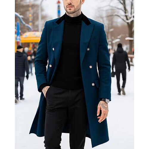 Per uomo Cappotto Trench Trench lungo Vacanza Quotidiano Autunno Inverno Poliestere Antivento Capispalla Abbigliamento Moda Classico Semplice Tasca Bavero Doppiopetto