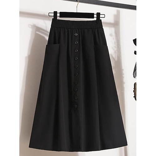 Per donna Moda Casual Midi Vita Alta Gonne Semplice Tasca Elasticizzato Quotidiano Streetwear Nero Cachi Primavera Poliestere